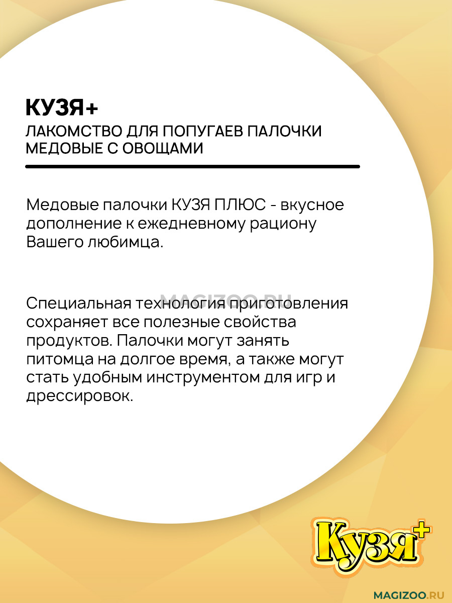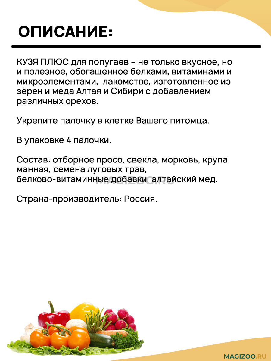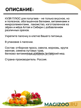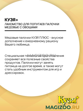 КУЗЯ ПЛЮС - Медовые палочки для попугаев "Овощи".