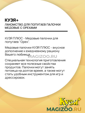 КУЗЯ ПЛЮС - Медовые палочки для попугаев "Орех".