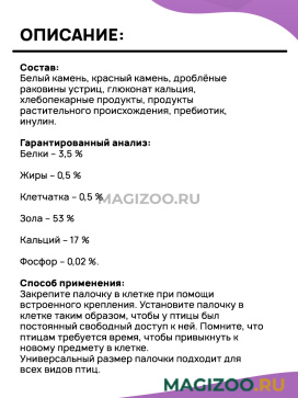 Минеральная палочка - это новый способ предложить питомцу жизненно важные минералы: кальций и фосфор, необходимые птице на ежедневной основе.