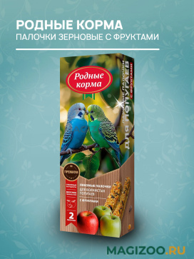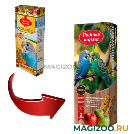 Лакомые палочки РОДНЫЕ КОРМА с фруктами для волнистых попугаев.