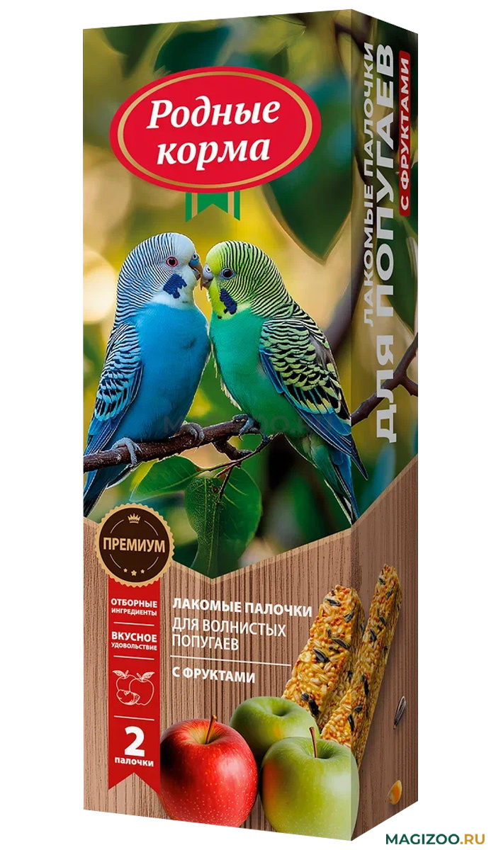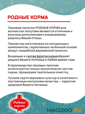 Лакомые палочки РОДНЫЕ КОРМА для волнистых попугаев являются отличным и вкусным дополнением к ежедневному рациону Вашей птицы.
