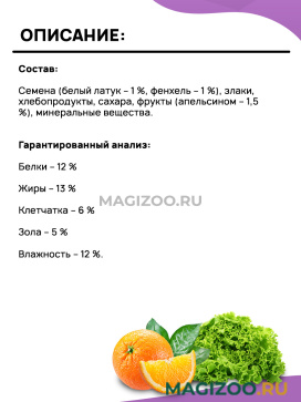 Рассыпчатые запеченные палочки с зернами огородных растений, дополнительное питание к обычному рациону птиц.