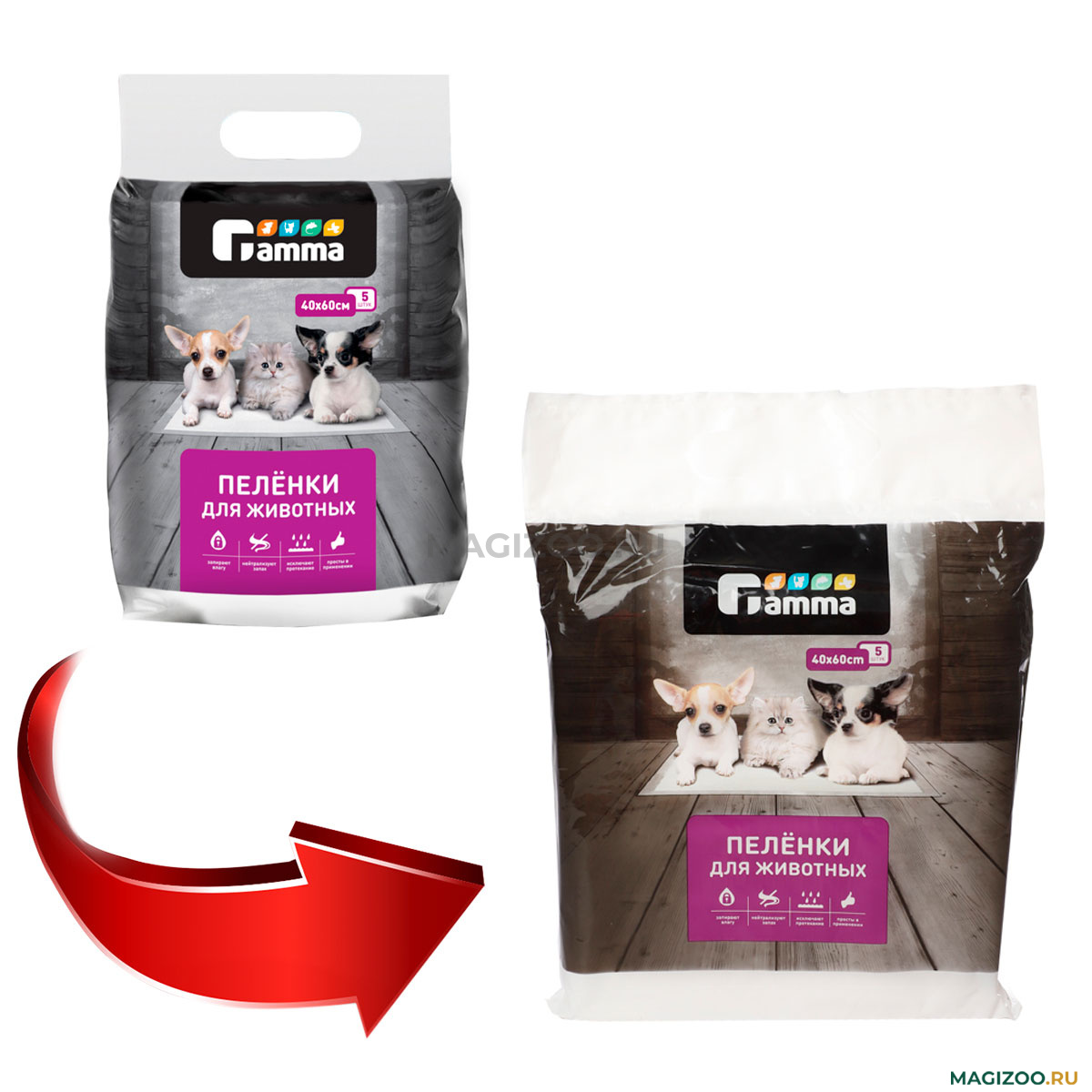 Пеленки для животных Gamma прекрасно впитывают и удерживают влагу, препятствуют распространению запаха и загрязнений.