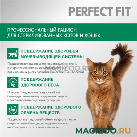 Бренд PERFECT FIT является одним из ведущих производителей кормов для животных. Эта торговая марка имеет огромнейший ассортимент продукции с разнообразными вкусовыми добавками.