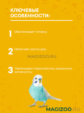 Гигиенический наполнитель для клеток декоративных птиц, минеральная добавка для птиц.
