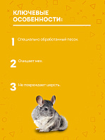 Пушистые грызуны обитают на засушливых территориях, поэтому водные процедуры могут негативно сказаться на их здоровье и внешнем виде. Специальный песок для купания шиншилл содержит микроскопические частички цеолита и сепиолита. Первая порода обладает высокой гигроскопичностью и избавляет питомцев от лишней влаги в шерстке. Второй минерал по своему строению очень близок к морской пемзе. Он обеспечивает бережное отшелушивание отмерших частичек кожи и удаление выпавших волосков из шерсти. Для снижения пыльности в некоторые смеси добавляются фракции обычного керамзитового песка.