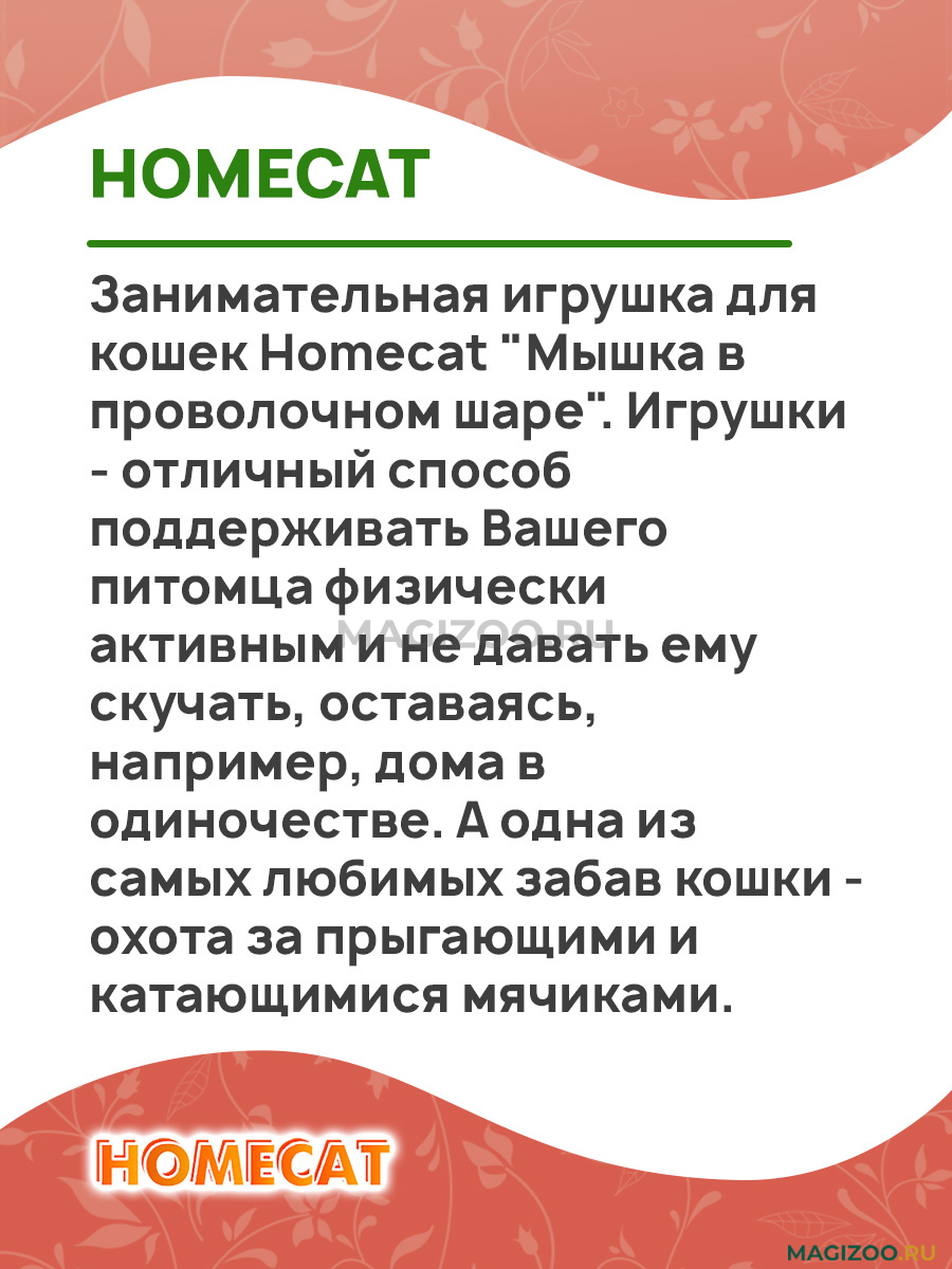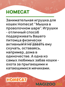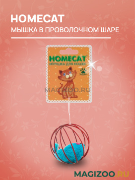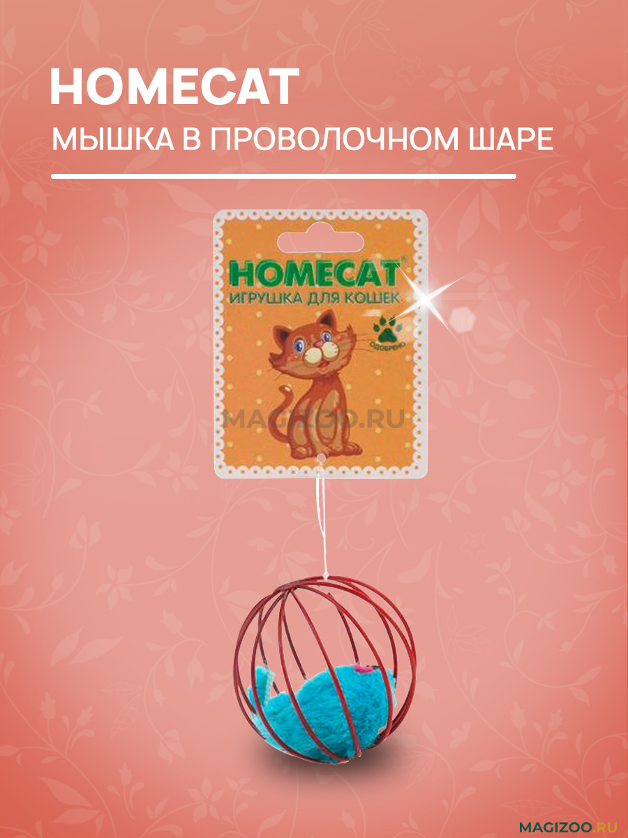 Занимательная игрушка для кошек Homecat "Мышка в проволочном шаре". Игрушки - отличный способ поддерживать Вашего питомца физически активным и не давать ему скучать, оставаясь, например, дома в одиночестве. А одна из самых любимых забав кошки - охота за прыгающими и катающимися мячиками.