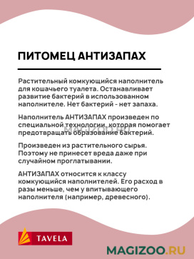 АНТИЗАПАХ относится к классу комкующийся наполнителей. Его расход в разы меньше, чем у впитывающего наполнителя (например, древесного).