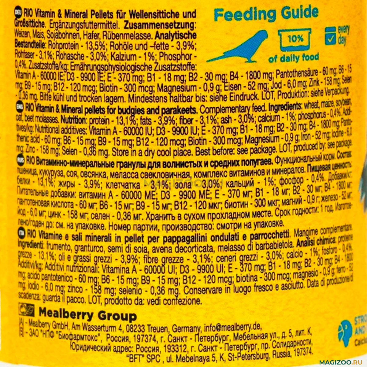 Витаминно-минеральные гранулы RIO для волнистых и средних попугаев – залог здоровой жизни Вашего пернатого питомца!
