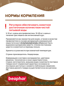 Информация о составе и ингредиентах, цветовом решении, технических и иных характеристиках, стране-изготовителе, внешнем виде и комплекте поставки товара носит справочный характер и основана на последних доступных к моменту публикации сведениях. Доставка данного товара осуществляется во все регионы РФ.Компания BEAPHAR постоянно расширялась и становилась одной из основных европейских компаний, которая производит необходимые товары для домашних животных. Сегодня насчитывается более 500 наименований продукции BEAPHAR для домашних питомцев.