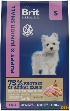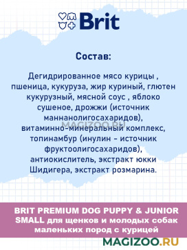 Полнорационный сухой корм Brit Premium Junior Medium с курицей для молодых собак (1-12 месяцев) маленьких пород. Подходит для беременных и кормящих собак.