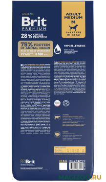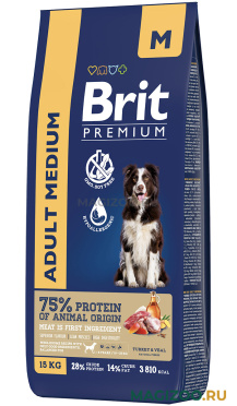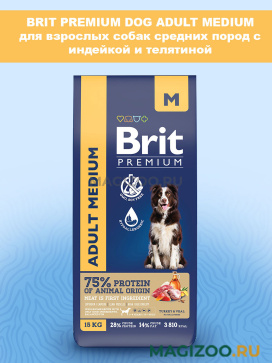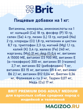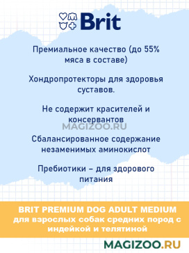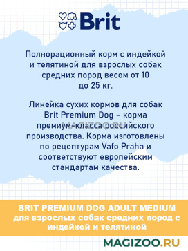 Полнорационный корм с индейкой и телятиной для взрослых собак средних пород весом от 10 до 25 кг.