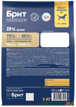 Полнорационный корм с индейкой и телятиной для взрослых собак средних пород весом от 10 до 25 кг.
