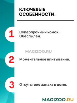 Абсолютно экологически чистый продукт. Крупные гранулы цеолита практически не разносятся по дому. Эксклюзивная формула с уникальными део-кристаллами невероятно надежно нейтрализует неприятный запах в лотке. Двойная фильтрация пылевых частиц - никаких следов на полу!