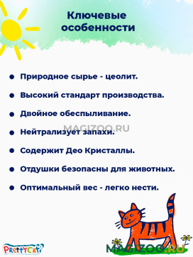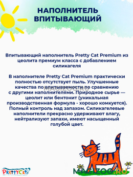 Впитывающий наполнитель Pretty Cat Premium из цеолита премиум класса с добавлением силикагеля.