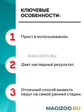 ВНИМАНИЕ: любые данные, полученные с помощью экспресс - теста не являются официальным диагнозом и носят рекомендательный характер. В случае положительного результата теста необходимо в обязательном порядке обратиться к ветеринару.