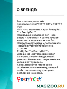 PrettyPet™ и PrettyCat™ - украшение индустрии и символ качества. Поэтому над каждой упаковкой и над ее содержимым мы хорошо потрудились.