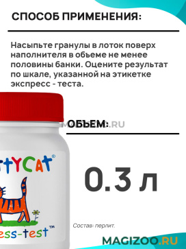 Применение: Насыпьте гранулы в лоток поверх наполнителя в объеме не менее половины банки. Оцените результат по шкале, указанной на этикетке экспресс - теста.