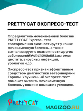 Определитель мочекаменной болезни PRETTY CAT Express - test своевременно диагностирует у кошки мочекаменную болезнь, а также сигнализирует о возможности других заболеваний мочеполовой системы: цистита, вирусных инфекций, урологии и др.