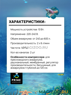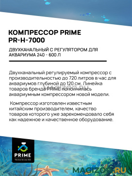 Линейка товаров бренда PRIME пополнилась аквариумным компрессором новой модели. Компрессор изготовлен известным китайским производителем, качество товаров которого уже зарекомендовало себя как надежное и качественное оборудование.