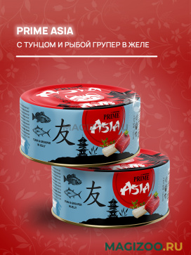 Полнорационный консервированный корм для взрослых кошек Prime Asia с сочным тунцом и рыбой групер в желе.