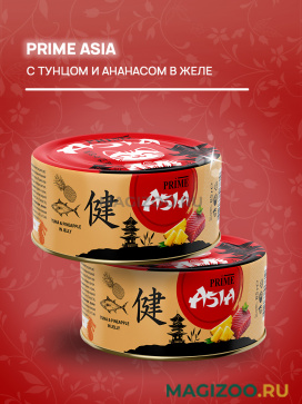 Полнорационный консервированный корм для взрослых кошек Prime Asia с сочным тунцом и ананасом в желе.