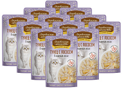 Состав: тунец 51%, осьминог 6%, рис 1,5%, растительный желатин 0,75%.