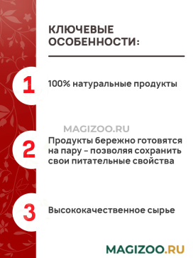 Все продукты бережно готовятся на пару, что позволяет сохранить питательные свойства ингредиентов, входящих в состав.