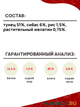 Влажный корм (консервы) PRIME ASIA TUNA & SEABASS для взрослых кошек с тунцом и сибасом в желе (85 гр)