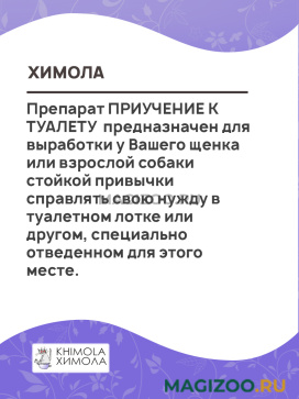 Препарат ПРИУЧЕНИЕ К ТУАЛЕТУ предназначен для выработки у Вашего щенка или взрослой собаки стойкой привычки справлять свою нужду в туалетном лотке или другом, специально отведенном для этого месте.