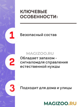 Снять защитный колпачок и распылить небольшое количество раствора с расстояния 20-30 см на туалетный лоток. Со временем у животного выработается стойкая привычка использовать для своих нужд именно лоток. Обработку следует повторять до приобретения стойкого рефлекса.