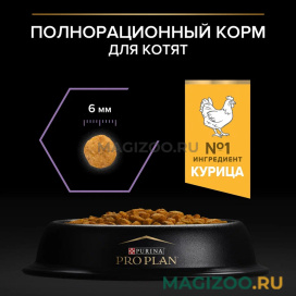 Нашей кошечке 5 месяцев, привереда ещё та, любит влажный корм. Решили попробовать сухой Pro plan для котят, и нам "зашёл"! Запах натуральный, вкус котенку нравится, потому что доедает до конца. Гранулы небольшие 5-6мм, думаю, что и совсем крошки справятся. Понравился состав, много витаминов, омега...Все, что нужно для растущего организма!