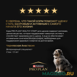 Изучая потребности щенков на протяжении многих лет, команда квалифицированных ветеринарных специалистов и диетологов PURINA разработала сухой корм PRO PLAN® Healthy start (здоровый старт) для щенков с 6 недель* —ежедневный рацион с высоким содержанием курицы для щенков средних пород. Этот полнорационный корм сбалансирован по составу и помогает укрепить иммунитет щенка.