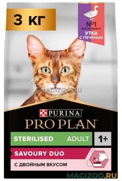 Команда квалифицированных ветеринарных специалистов и диетологов разработала сухой корм для стерилизованных привередливых кошек PRO PLAN® Sterilised SAVOURY DUO с двойным вкусом. Это сбалансированный корм, в котором есть весь комплекс питательных веществ и микроэлементов, важных для здоровья вашего питомца.