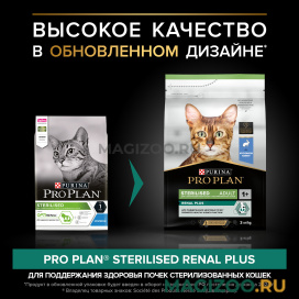 Корм сухой для кошек PRO PLAN® Sterilised RENAL PLUS (Поддержание здоровья почек) — это полюбившийся PRO PLAN® Sterilised OptiRenal с новым названием, но прежним составом и качеством.
