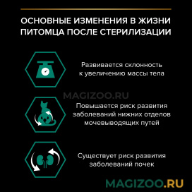 Помогает поддерживать здоровье мочевыделительной системы и оптимальный вес тела стерилизованных кошек