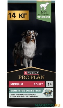 Изучая потребности собак на протяжении многих лет, команда квалифицированных ветеринарных специалистов и диетологов PURINA разработала сухой корм PRO PLAN® Sensitive digestion (для чувствительного пищеварения) — ежедневный рацион с высоким содержанием ягненка для взрослых собак средних пород. Этот полнорационный корм сбалансирован по составу и помогает поддержать здоровое пищеварение.