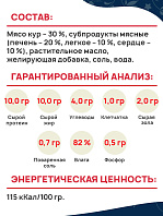 Гарантируемые показатели:белок: 28.0%, содержание жира: 17.0%, сырая зола: 7.5%, сырая клетчатка: 2.5%.