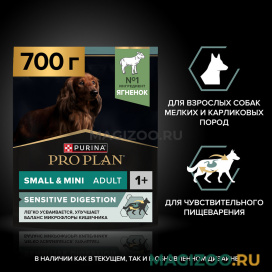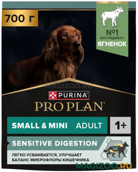 Изучая потребности собак на протяжении многих лет, команда квалифицированных ветеринарных специалистов и диетологов PURINA разработала сухой корм PRO PLAN® Sensitive digestion (для чувствительного пищеварения) — ежедневный рацион с высоким содержанием ягненка для взрослых собак мелких и карликовых пород. Этот полнорационный корм сбалансирован по составу и помогает поддержать здоровое пищеварение.