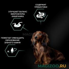 Корм премиум класса. Для собак маленьких пород. Способствует улучшению пищеварения, в том числе микрофлоры кишечника. Пакет корма имеет специальный замок, можно закрыть плотно после вскрытия. Хрустящие крокеты привлекательны для пса. Поедает с радостью. Стул в результате на этом корме нормальный, проблемы с кожей прошли.