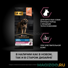 Корм сухой для взрослых собак крупных пород с мощным телосложением PRO PLAN® Sensitive skin (для чувствительной кожи) — это полюбившийся PRO PLAN® Opti Derma (Опти Дерма) с новым названием, но с прежним составом и качеством.