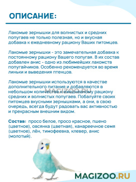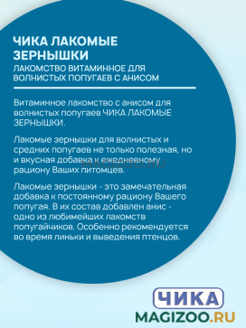 Витаминное лакомство с анисом для волнистых попугаев ЧИКА ЛАКОМЫЕ ЗЕРНЫШКИ.
