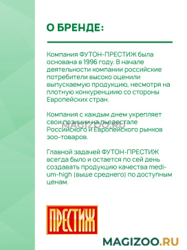 Информация о составе и ингредиентах, цветовом решении, технических и иных характеристиках, стране-изготовителе, внешнем виде и комплекте поставки товара носит справочный характер и основана на последних доступных к моменту публикации сведениях. Доставка данного товара осуществляется во все регионы РФ.Компания с каждым днем укрепляет свои позиции на пьедестале Российского и Европейского рынков зоо-товаров.