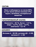 Мясо и субпродукты не менее 80% (в том числе говядина минимум 10%), таурин, витамины, минеральные вещества.