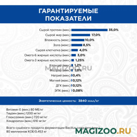 - В состав корма входят глюкозамин и хондроитин для защиты суставов.