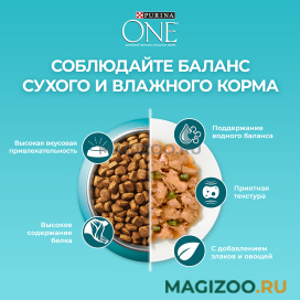 Сочетание сухого и влажного корма Purina ONE® обеспечивает сбалансированное питание и гарантированную пользу.