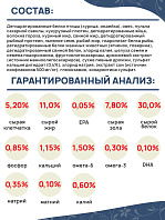 Состав товара:Лосось (16,5%), сухой белок птицы, пшеница (15%), растительная мука, пшеничный глютен, кукуруза, животные жиры, высушенная мякоть свеклы, пшеничная крупка, высушенный корень цикория* (2%), минеральные вещества, консерванты, гидролизат белка животного происхождения, дрожжи, витамины, аминокислоты, антиоксиданты.