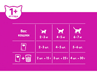 Рекомендации по кормлению:Кормите правильно вместе с Purina ONE®, дополнив сухой рацион влажными кормами, созданными с учетом потребностей Вашего питомца.