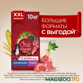 Сухой корм для собак Purina ONE® с высоким содержанием ягненка и с рисом 10 кг — это: