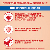 Корм Purina ONE® (ПУРИНА УАН) для взрослых собак средних и крупных пород (>10кг) — это высококачественное полнорационное питание, разработанное экспертами Пурина для поддержания здоровой микрофлоры кишечника. Баланс микрофлоры важен для здоровья пищеварительной системы, иммунитета и общего состояния собаки.